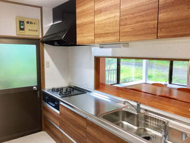 Of course, storage is also sufficient with the latest system kitchen. Moreover, the living room has a large window of two-sided daylighting, and it is a bright space.